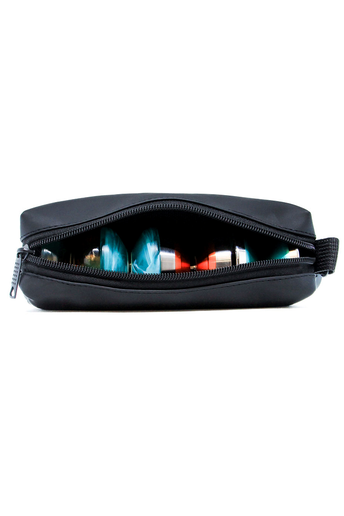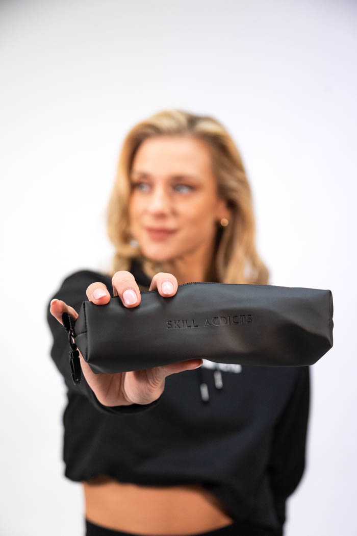 Water resistant sleek black multi pouch for your skill gear. Matte black finish with pressed SkillAddicts logo. Padded inside, strong metal zipper. Fits spin tops, yoyos, footbags, juggling balls and small accessories while keeping everything protected and organised.