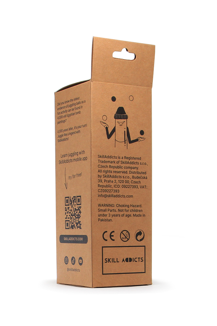 The SkillAddicts Multi Pouch protects your set and keeps everything together during travel, school or park sessions. One set for learning, training and progressing toward pro level juggling tricks.