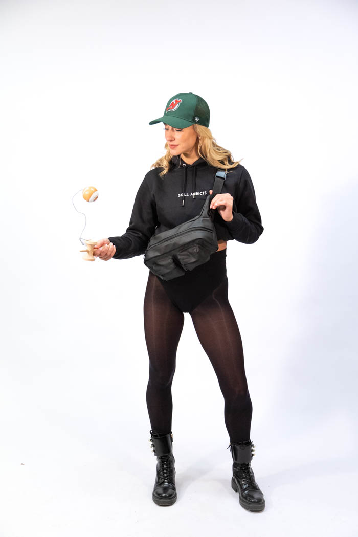 The SkillAddicts Sling Bag is ideal for players who take their gear everywhere. Structured pockets and outer straps hold many kendamas, yoyos, spin tops, footbags, accessories and even a water bottle. The design keeps the bag close to your body so it does not limit your movement while you play or do tricks.