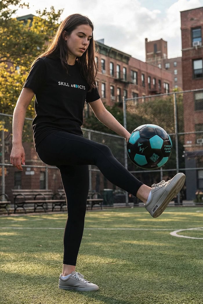 Combine the ball with structured training inside the SkillAddicts app and learn football tricks faster.